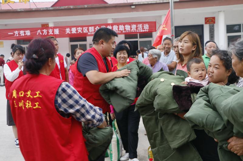 去年7月底,面對來勢洶洶的雨情汛情,三川社工迅速反應(yīng),立即組建了由60名社工、義工組成的防汛救災(zāi)突擊隊,連續(xù)10天在賈魯河沿岸3個村莊和二板橋段開展防汛值守;組織40名社工、義工裝卸防汛救災(zāi)物資,向川匯區(qū)、西華縣、扶溝縣30多個防汛值守點和居民安置點運(yùn)送食物和救災(zāi)物資。