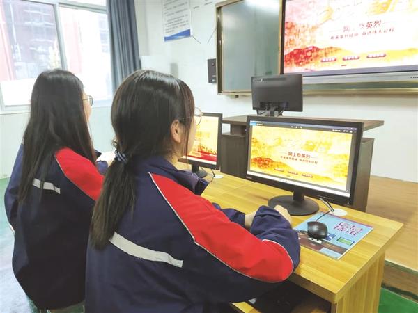 3月29日,項(xiàng)城市名仕路學(xué)校的兩名學(xué)生正在聽清明節(jié)網(wǎng)上祭奠英烈愛國(guó)主義思政課。