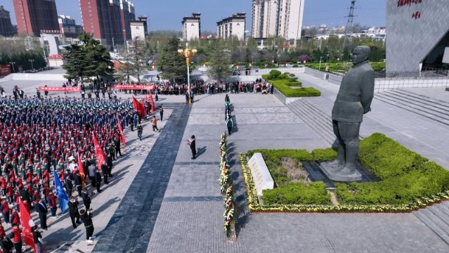 3月29日,在扶溝縣吉鴻昌將軍紀(jì)念館,當(dāng)?shù)亟逃块T組織1300余名中學(xué)生開展“清明祭英烈”暨青少年愛國(guó)主義教育實(shí)踐活動(dòng)。