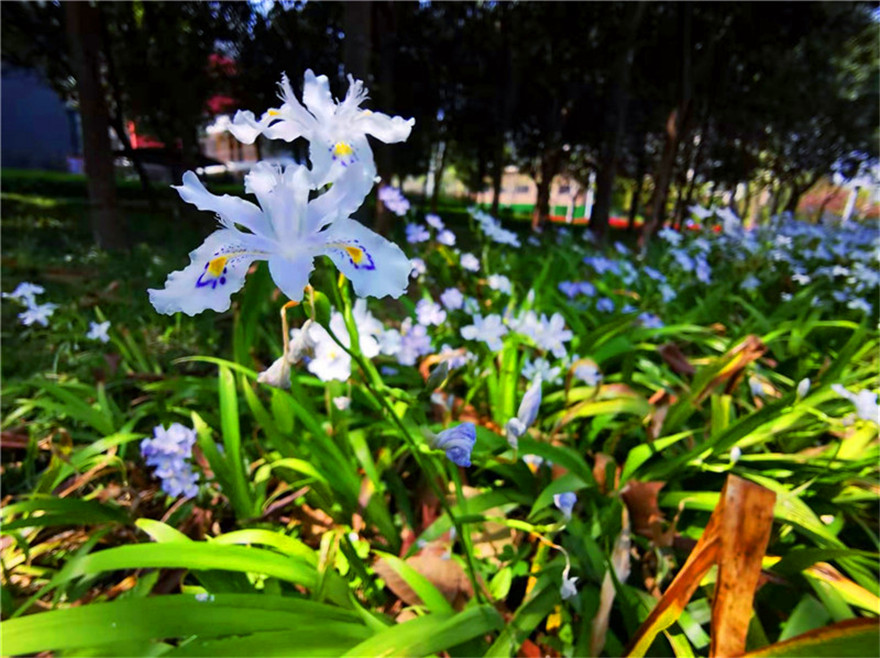 近日,濱河公園的蝴蝶花開了,微風輕撫,如千百只彩蝶在綠葉叢中蹁躚起舞,典雅清麗,清香四溢。②10