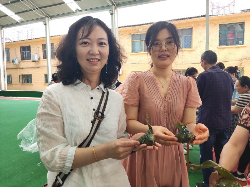 “雖然我平常很少包粽子,但還是挺簡單的。”文松強邊說邊包,用繩子將粽子纏繞好,用牙咬住繩子的一頭,一手拿粽子,另一手將繩子打結(jié)。整個過程一氣呵成,引來不少人前來學(xué)習(xí)。