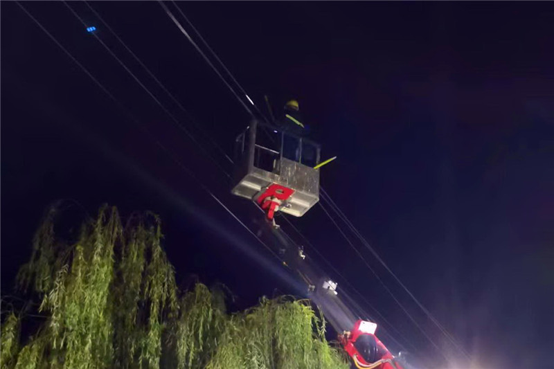 故障發(fā)生后,國網(wǎng)周口供電公司立即啟動惡劣天氣應(yīng)急預(yù)案,并通過手機短信傳達(dá)到每位職工。雨勢稍微放緩后,各縣市供電公司迅速派出應(yīng)急搶修分隊,出動搶修人員1389人,搶修車輛303輛。在雨中,大家分工協(xié)作,爭分奪秒完成每一道工序,一部分搶修人員排查線路,消除安全隱患,防止次生災(zāi)害;一部分搶修人員快速投入到搶修工作中。
