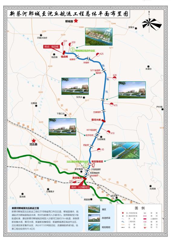 “鄲城交通運輸在我市相對落后,目前境內交通全部是公路,周口國家農業(yè)高新技術產業(yè)示范區(qū)(簡稱農高區(qū))就位于新蔡河腹地鄲城。鄲城港區(qū)通過新蔡河通航,可為農高區(qū)提供便捷的多式聯運方式,以運輸結構優(yōu)化調整促進產業(yè)結構轉型升級?!备呦璩山榻B,內河航運是現代綜合交通運輸體系的重要組成部分,補齊內河航運基礎設施短板,推進內河航運高質量發(fā)展,有利于鄲城縣、沈丘縣融入國家“一帶一路”建設等戰(zhàn)略,提高對外開放水平。