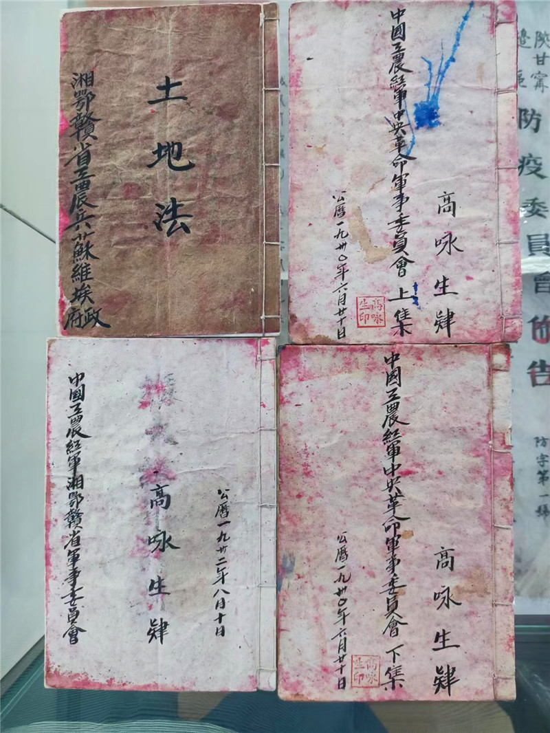 李洪東收藏的高詠生手寫筆記共有四本,包括高詠生用毛筆抄寫的公文《中國工農(nóng)紅軍中央革命軍事委員會》文件上集和下集、《湘鄂贛省工農(nóng)兵蘇維埃政府土地法》、1932年書寫的文件《目前擴(kuò)大紅軍的計劃大綱》。文件上面都有“高詠生肄”幾個字,蓋“高詠生印”大紅印章。