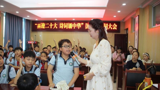 • 為迎接黨的二十大勝利召開、新中國成立73周年,進一步促進優(yōu)秀傳統(tǒng)文化進校園,9月28日,經(jīng)開區(qū)蓮花路小學舉行“喜迎二十大,詩詞誦中華”國慶節(jié)詩詞大會。廣大學子積極參與其中,歌頌祖國,謳歌時代,以實際行動續(xù)寫新時代的“詩與遠方”。