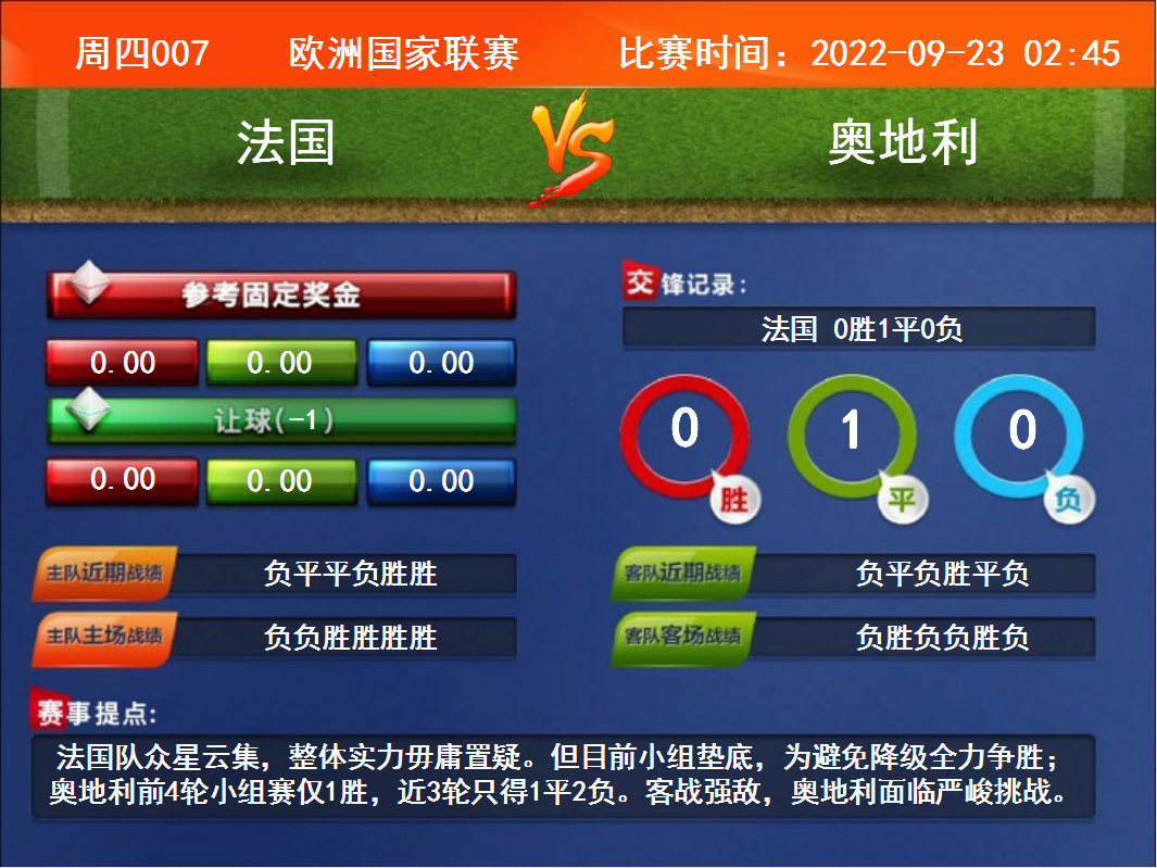 周四007 歐洲國家聯(lián)賽 法國VS奧地利