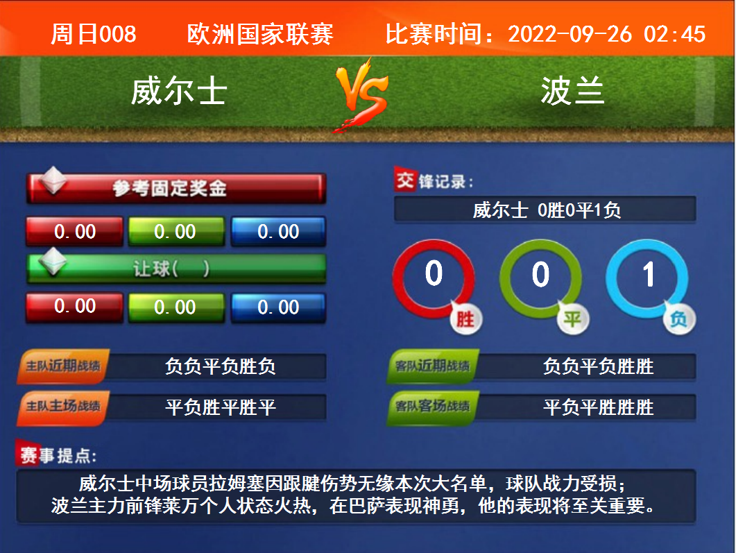 周日008 歐洲國家聯(lián)賽 威爾士VS波蘭