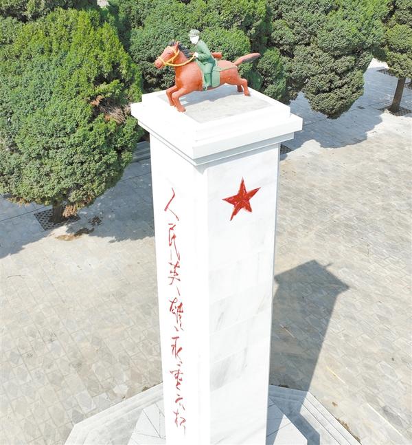 沈丘縣烈士陵園內(nèi),以朱彬烈士為原型的解放軍策馬揚鞭雕像 王亞輝 攝
