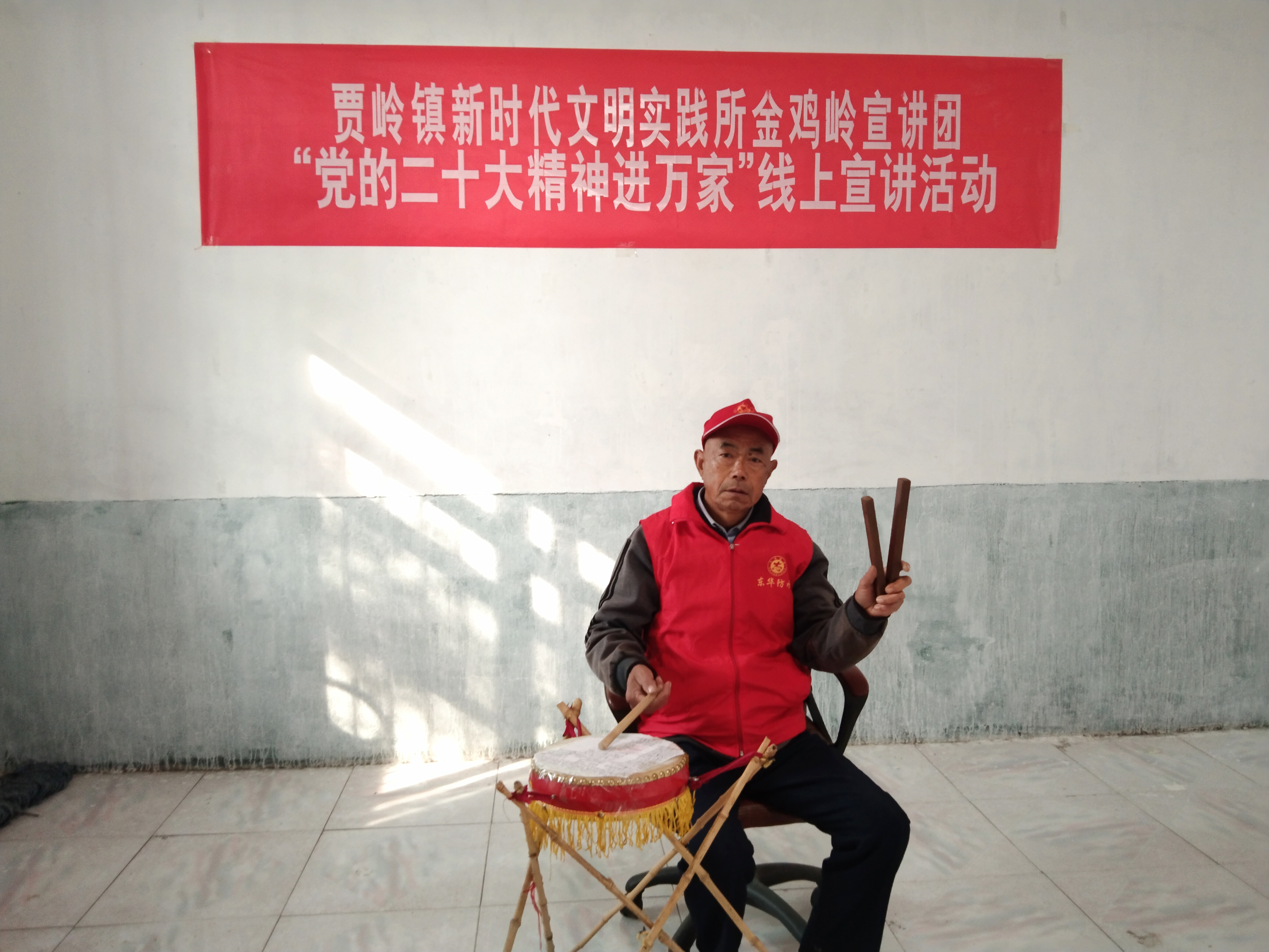 近日,項(xiàng)城市賈嶺鎮(zhèn)新時(shí)代文明實(shí)踐所金雞嶺宣講團(tuán)志愿者、七旬老人閆汝才閑暇就會(huì)坐在一張凳子上,一手敲鼓、一手夾板,配合唱腔、道白,利用非遺“大鼓書(shū)”藝術(shù)表演形式,通過(guò)抖音平臺(tái)在線上宣傳黨的二十大精神。