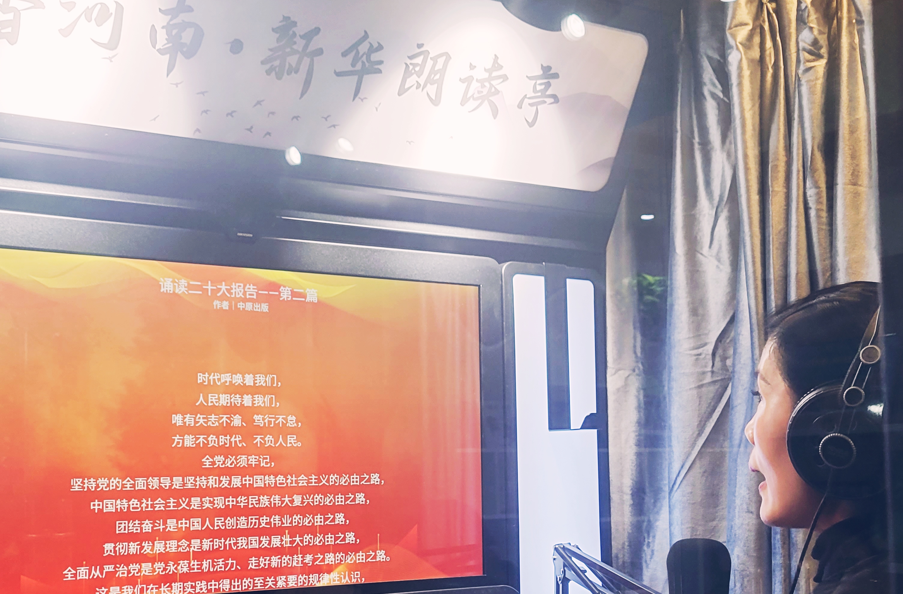 “堅(jiān)持黨的全面領(lǐng)導(dǎo)是堅(jiān)持和發(fā)展中國(guó)特色社會(huì)主義的必由之路……”11月3日,在位于項(xiàng)城市商城路與西大街交叉口的新華書(shū)店誦讀亭內(nèi),誦讀愛(ài)好者年秋燕正在選讀黨的二十大報(bào)告原文,其深情且鏗鏘有力的誦讀聲令人如癡如醉。