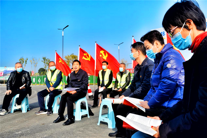 黨旗迎風(fēng)飄揚(yáng),機(jī)器轟鳴作響,伴隨著壓路機(jī)、挖土機(jī)等施工機(jī)械的作業(yè)聲,周口市公路系統(tǒng)職工在項目施工現(xiàn)場學(xué)習(xí)黨的二十大精神成為一道亮麗的風(fēng)景。