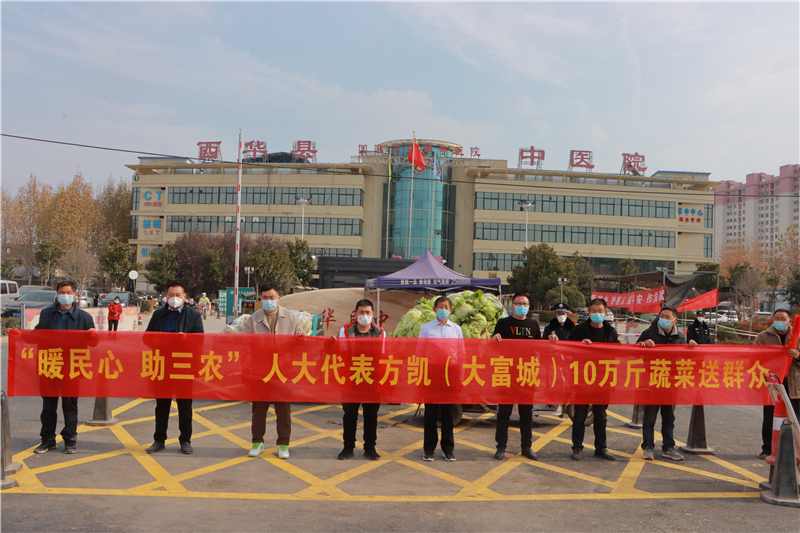 近日,方凱了解到西華縣黃橋鄉(xiāng)菜農(nóng)蔬菜滯銷的問題,便立即到現(xiàn)場察看,當(dāng)即決定幫助菜農(nóng)解決蔬菜滯銷難題,購買10萬斤蔬菜,并將這些蔬菜捐贈給縣人民醫(yī)院、中醫(yī)院、敬老院等單位。