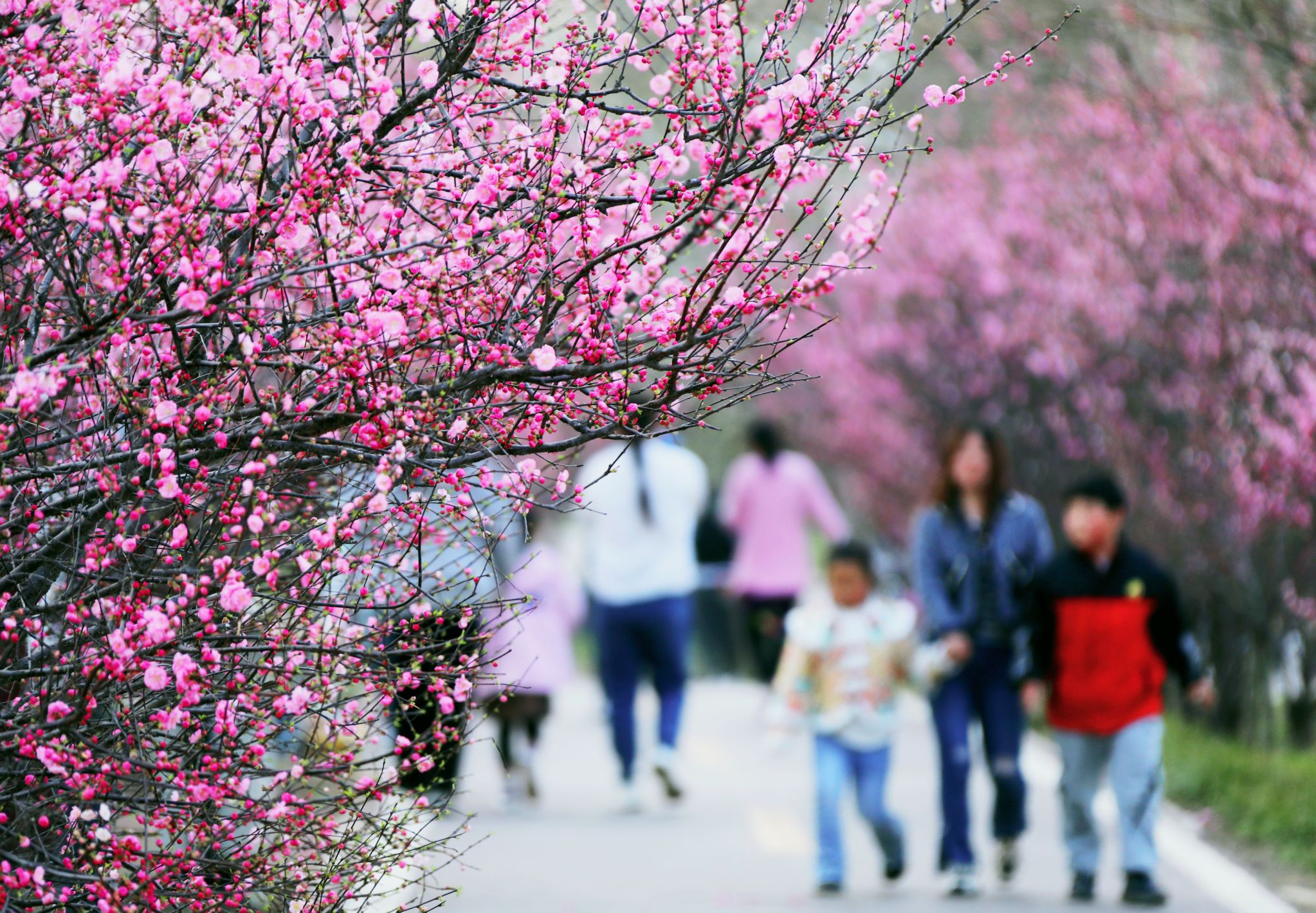 連日來(lái),長(zhǎng)達(dá)十里的桃花長(zhǎng)廊,每天吸引著眾多市民前來(lái)踏青賞花、拍照留念。人們?cè)谫p花的同時(shí),陶冶了心情,鍛煉了身體,收獲了愉悅。①2