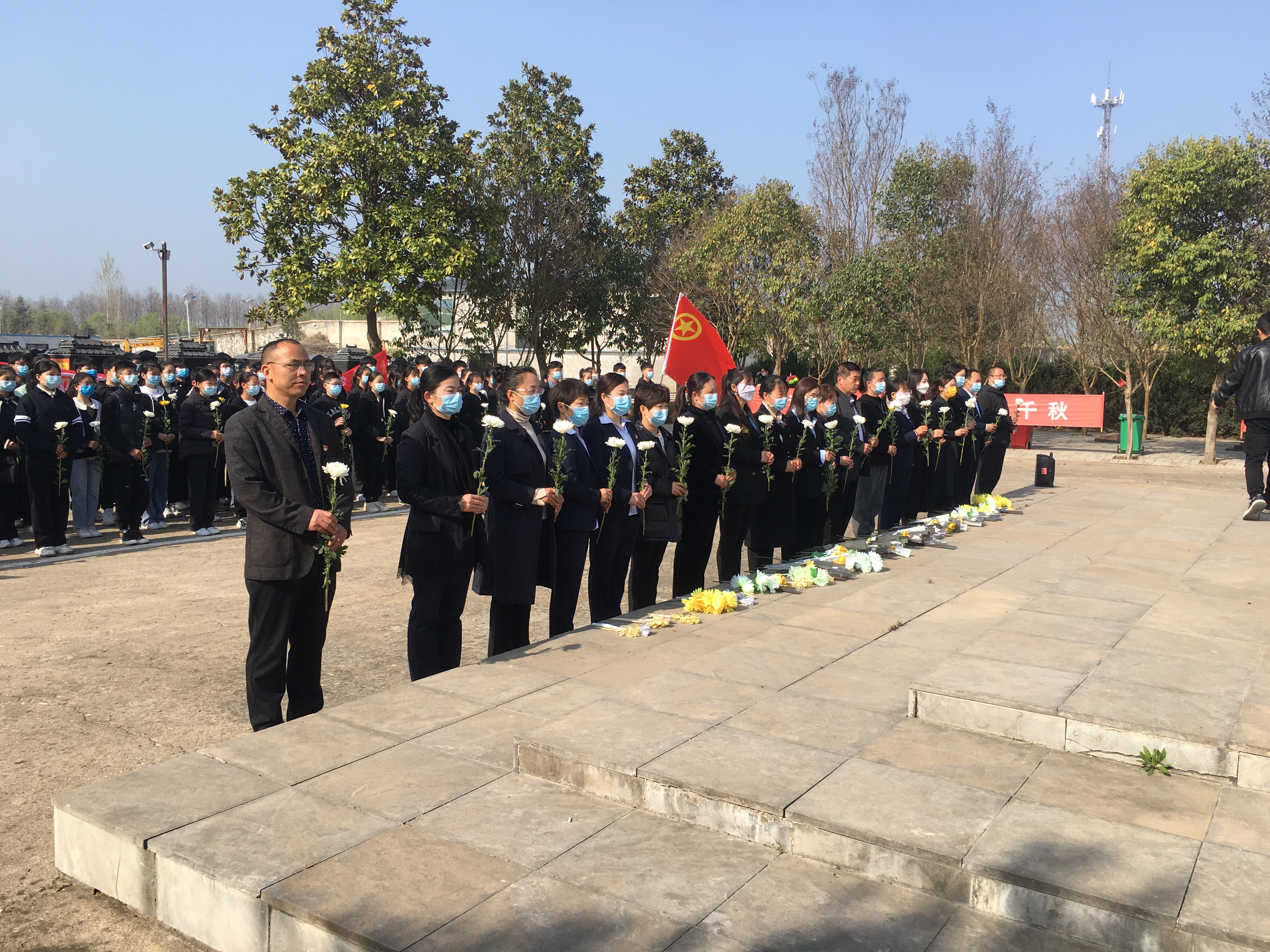 青山埋忠骨,史冊載功勛。商水縣烈士陵園廣場,學(xué)生們排著整齊的隊伍,莊嚴(yán)肅穆。學(xué)生代表向烈士紀(jì)念碑敬獻(xiàn)花籃,在墓前同學(xué)們低頭致哀,全體人員進(jìn)行三鞠躬表達(dá)對革命烈士的深切緬懷。學(xué)生代表向革命烈士獻(xiàn)詞,該校副校長王政華向同學(xué)們講述了烈士事跡,希望同學(xué)們能夠秉承先烈遺志,弘揚(yáng)英雄精神,志存高遠(yuǎn),成長為棟梁之材。