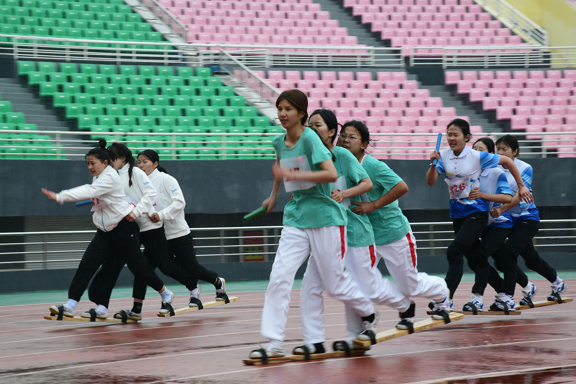 參加板鞋競(jìng)速的女子組比賽火熱進(jìn)行中 記者 梁照曾 攝
