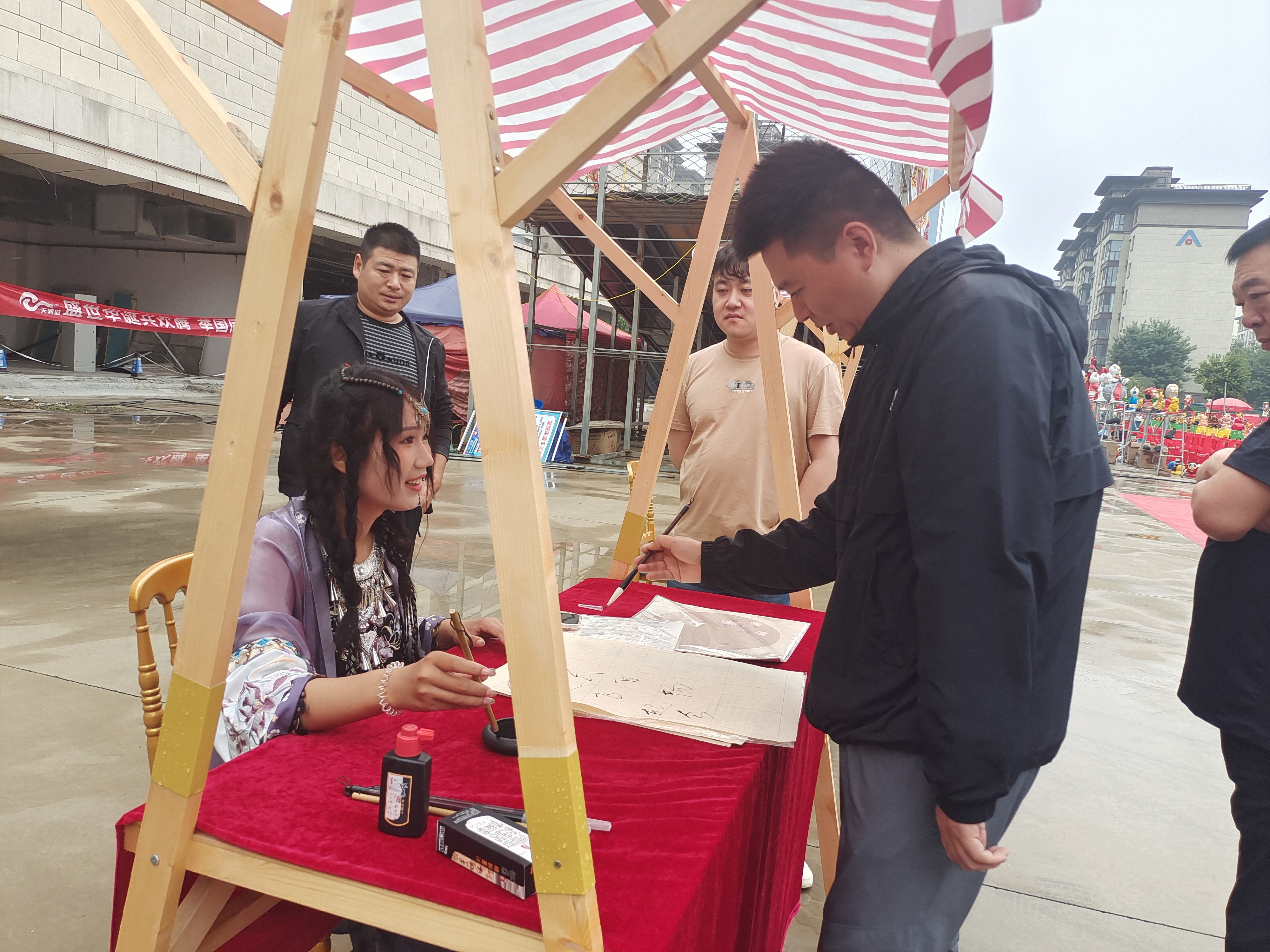 伴隨著開場舞《盛世歡歌》,“潮流雙節(jié)·中秋游園會暨國慶嘉年華”活動啟動儀式正式拉開帷幕。泥泥狗、剪紙、書法、繪制團扇……現(xiàn)場工作人員有的身著少數(shù)民族服裝,有的身著漢服,用親手制作的方式展示著傳統(tǒng)非物質文化遺產(chǎn)獨有的韻味,吸引著來往的大人小孩駐足。有的甚至親自參與制作,捏泥泥狗、寫毛筆字、畫傳統(tǒng)團扇……現(xiàn)場歡笑不斷,大家在親自動手的過程中充分感受著中國傳統(tǒng)節(jié)日的豐富文化內(nèi)涵。