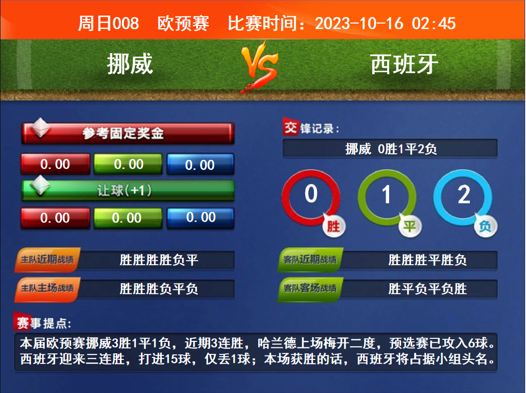周日008 歐預賽 挪威VS西班牙