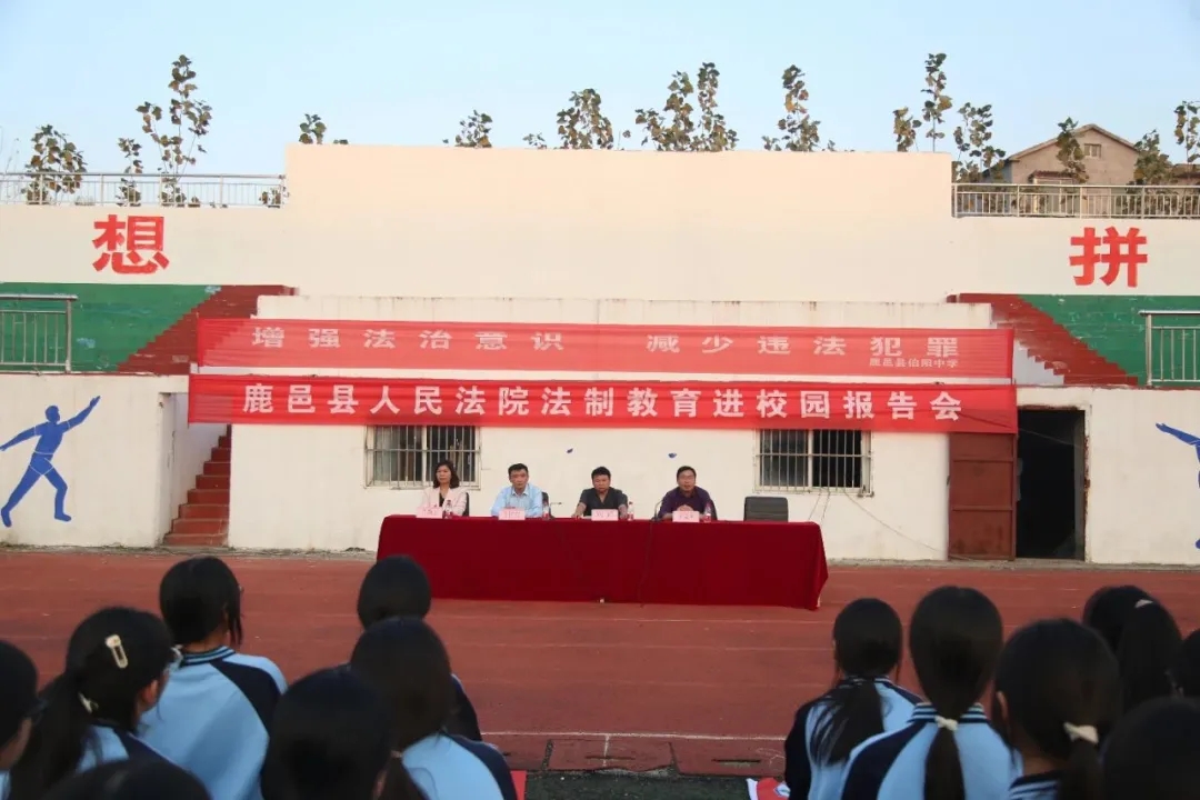 為深入推進(jìn)法治進(jìn)校園活動開展,努力營造校園學(xué)法、懂法、守法的良好氛圍,提高廣大師生的法律素質(zhì)和法制意識,全力構(gòu)建和諧文明校園,10月15日,鹿邑縣伯陽中學(xué)舉行了校園法治教育報告會。校長王國立、黨支部書記王金利與初中部全體師生參加報告會。