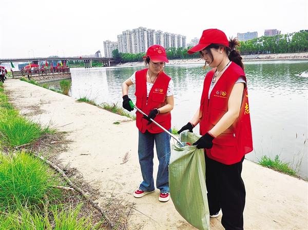 6月2日,我市200余名環(huán)保志愿者在沙潁河中心城區(qū)段周口大道橋東側巡河護水、清理岸邊雜物、打撈河面漂浮物。