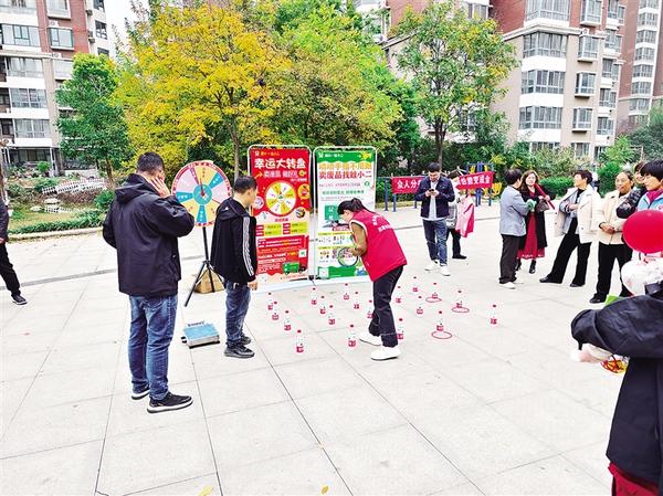 叔叔、阿姨,你們知道垃圾怎么分類嗎?平時家里的垃圾分類有沒有什么問題?歡迎你們參加垃圾分類知識趣味游戲競猜,答對了可以領取禮品……”