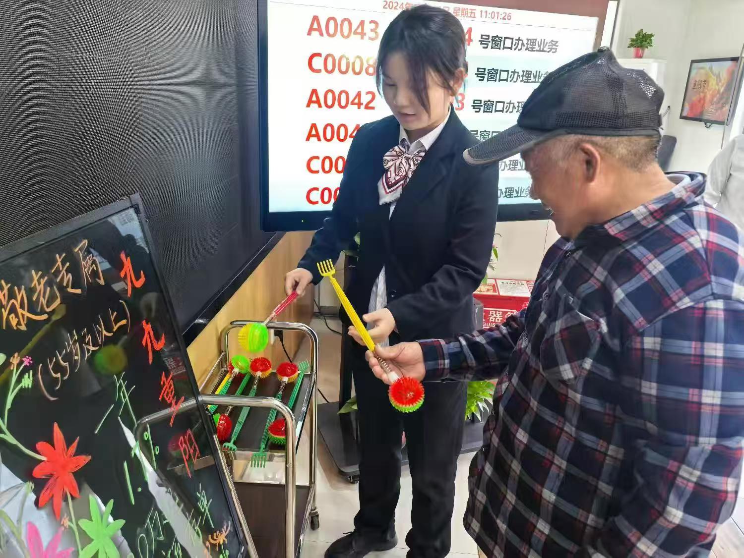 該行深入貫徹落實“工行驛站”服務民生,做好“五篇大文章”,以“引進來+走出去”和“線上+線下”聯(lián)動方式,依托網(wǎng)點資源稟賦,圍繞年長進店客群,開展“尊老敬老”活動,邀請他們體驗工行驛站愛心窗口、自助機具大字版和適老金融自助終端等助老服務設施;向老年客戶“一對一”宣傳普及國家養(yǎng)老保障政策,介紹工商銀行適老金融產(chǎn)品及服務;不定期聯(lián)合養(yǎng)老、醫(yī)療等機構(gòu),向“銀發(fā)”客群提供健康咨詢服務;為行動不便的年邁老人上門辦理金融業(yè)務,加強對老年客群的關(guān)心關(guān)愛,讓老年客戶親身體驗到工商銀行的暖心服務。