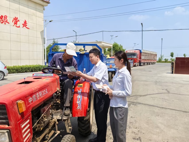在此基礎(chǔ)上,該行組織志愿者到鄉(xiāng)村合作社和糧食收購站開展送清涼活動(dòng),為交糧農(nóng)戶和收購人員送上飲用水,遞上宣傳折頁,向他們講解工商銀行的普惠金融業(yè)務(wù),介紹為農(nóng)村合作社、種糧大戶、糧食收購站量身定制的“種植e貸”“糧食收購貸”等金融產(chǎn)品;為他們宣傳國家金融惠農(nóng)政策,普及反電信詐騙、反假幣知識(shí),切實(shí)守好自身“錢袋子”。