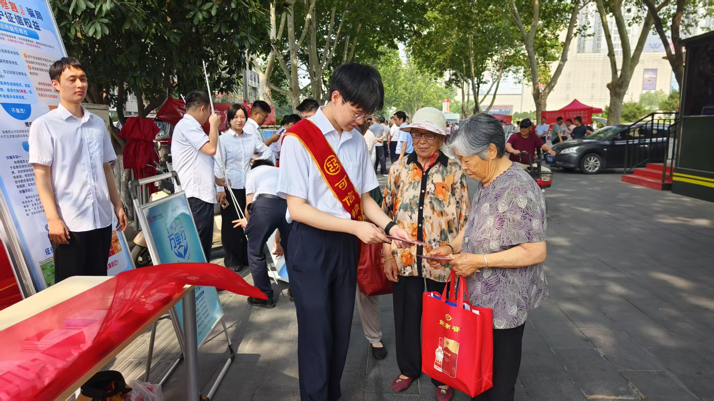 活動期間,該行設立宣傳咨詢臺,擺放展架,青年志愿者向過往群眾發(fā)放征信宣傳折頁,講解個人征信報告查詢、信用維護、逾期影響等實用知識。針對群眾所關心的征信有關問題,志愿者結合典型案例,深入淺出地解答市民“如何避免不良征信”和正確“修復信用記錄的途徑”,揭示“征信修復”騙局的常見手段及預防措施,引導群眾保護好自己的身份信息、關注自身信用記錄,切實維護好自身權益,防范征信詐騙,助力社會信用體系建設。