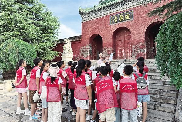 講解員為“小小講解員”集中培訓(xùn)。8月11日,太昊伏羲陵文化旅游區(qū)“小小講解員”培訓(xùn)活動圓滿落幕。此次活動中,淮陽區(qū)30余名青少年懷揣著對家鄉(xiāng)文化的熱愛,經(jīng)過為期一周的集中培訓(xùn),具備基本的講解能力,為傳承淮陽千年文脈注入了新鮮血液。記者 侯俊豫 通訊員 莊秋薇 攝