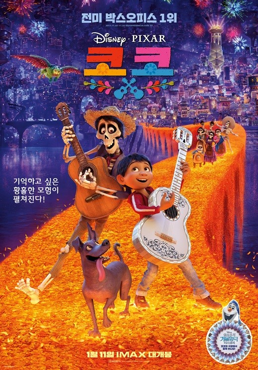 美國(guó)動(dòng)畫(huà)電影《尋夢(mèng)環(huán)游記》昨天在韓國(guó)上映,創(chuàng)下了超過(guò)10萬(wàn)人的首映觀影人數(shù)?!?a href="http://www.thebachelorsreview.com/content/2018-01/15/content_802168.htm" target="_blank" >[詳細(xì)]