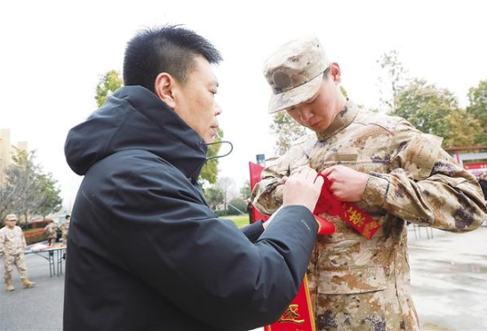 近日,周口川匯區(qū)的新兵歡送現(xiàn)場,13位老兵父親親手為新兵兒子戴上大紅花。一個軍禮,一聲誓言,兩代人的強軍夢在此交接。