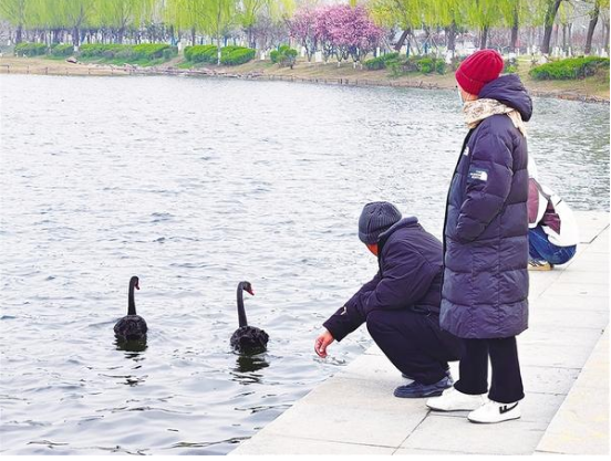 3月18日,記者從扶溝縣人民公園管理處了解到,經過一段時間的適應性喂養(yǎng),由鹿邑縣于春節(jié)前夕贈送的6只黑天鵝正式“落戶”該公園人工湖。