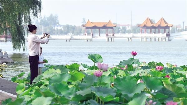 夏天的淮陽就像一幅寫意畫卷,在清涼的湖風(fēng)吹拂下徐徐展開。登上龍湖邊的六藝閣,遠(yuǎn)處的古城,臥波的大橋,近處的荷花,搖曳的蘆葦,仿古的碼頭,靜泊的游船,歸巢的飛鳥……放眼處,無不令人陶醉其間。