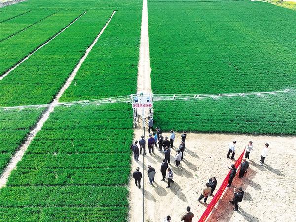 設施農(nóng)業(yè)看泛區(qū)。近日,黃泛區(qū)農(nóng)場一企業(yè)自主研發(fā)的小型自走式澆地機備受種植大戶關(guān)注。