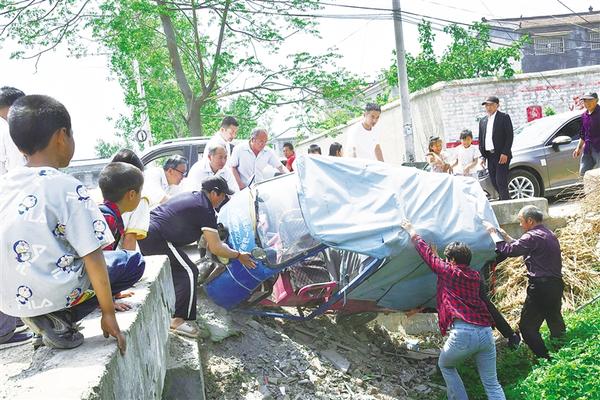 4月18日,眾人合力將三輪車抬出路溝。當日12時左右,西華縣田口鄉(xiāng)李陳村東邊的一處十字路口,一名村民騎著三輪車不慎從橋上栽入路溝,車上載有兩個孩子。市文聯(lián)三級調(diào)研員李哲、市民協(xié)主席杜忠義、西華縣文聯(lián)主席王鵬飛等人到田口鄉(xiāng)開展民間文學田野調(diào)查工作,正好從此處經(jīng)過,聽到喊聲后,他們急忙下車救援。