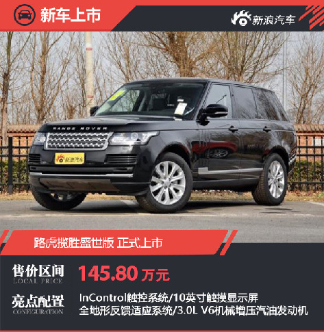 今日,路虎宣布攬勝盛世版正式上市,指導售價為145.80萬元?!?a href="http://www.thebachelorsreview.com/content/2017-10/12/content_578072.htm" target="_blank" >[詳細]