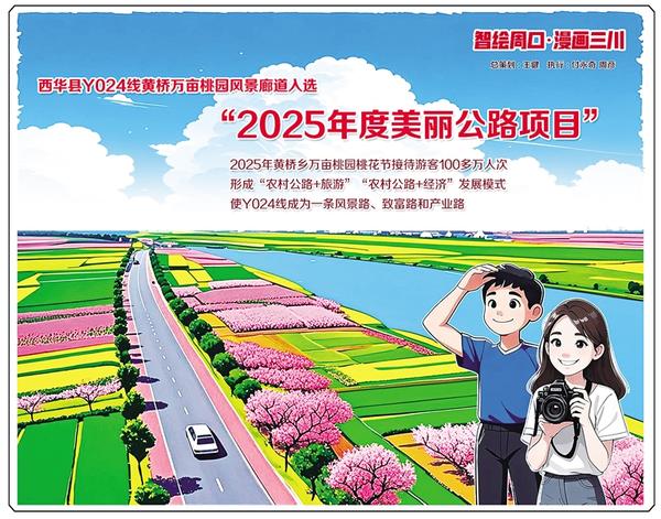 中國公路學會近日公布“2025年度美麗公路項目”名單,西華縣Y024線黃橋萬畝桃園風景廊道成功入選。