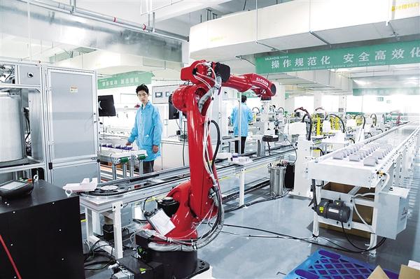 位于川匯區(qū)的河南宇虹物聯(lián)網(wǎng)科技有限公司年產(chǎn)100萬塊熱力智能傳感器生產(chǎn)項目,總投資1.5億元,主要生產(chǎn)智能超聲波熱量表。目前,該項目已投產(chǎn)運營,滿產(chǎn)后預計年產(chǎn)值2.6億元,實現(xiàn)年利稅3600萬元。圖為工人在生產(chǎn)線上操作機器人加工產(chǎn)品。