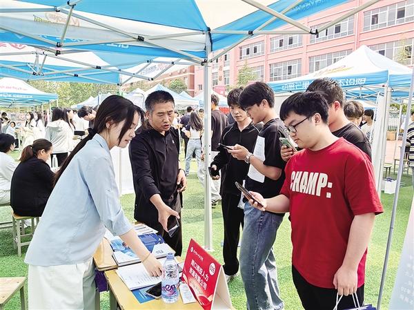 用人單位代表向求職學生介紹企業(yè)情況。5月15日,周口理工職業(yè)學院舉辦2025屆畢業(yè)生“雙選會”?;顒又校舐殞W生積極與用人單位代表溝通交流、提交個人簡歷。用人單位代表耐心解答疑問,介紹公司發(fā)展前景、崗位需求及福利待遇等情況,積極招攬優(yōu)秀人才。