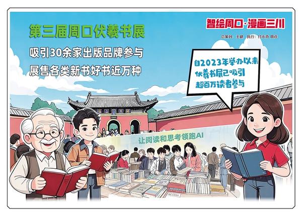 龍湖碧波映羲陵,時代書香沁古城。近日,第三屆周口伏羲書展從淮陽移師周口中心城區(qū),繼續(xù)開展專場展銷活動。本屆書展以“讓閱讀和思考領(lǐng)跑AI”為主題,聚焦“閱讀價值升維”,重點(diǎn)展售經(jīng)典人文、認(rèn)知提升、深度思考類圖書。