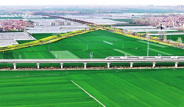 4月11日,一列高鐵列車駛過扶溝縣境內(nèi)廣袤的麥田。近年來,扶溝縣累計建成高標(biāo)準(zhǔn)農(nóng)田119.7萬畝,疏浚治理河道64公里,維修重建閘涵33座,為實(shí)現(xiàn)穩(wěn)產(chǎn)增收提供了堅實(shí)保障。