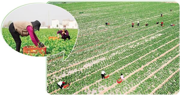 近年來,我市積極推廣“合作社+農(nóng)戶”“家庭農(nóng)場+農(nóng)戶”經(jīng)營模式,鼓勵農(nóng)民通過土地流轉(zhuǎn)將分散耕地整合起來,實(shí)現(xiàn)集中化、規(guī)模化經(jīng)營,全力提高土地利用效率,為鄉(xiāng)村振興注入強(qiáng)勁動力。圖為4月11日,在淮陽區(qū)王店街道范莊行政村的農(nóng)田里,村民正采收蔬菜。