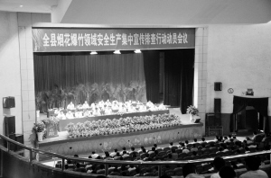會議指出,前不久發(fā)生的6.18事故教訓(xùn)異常深刻。近期,市委、市政府多次召開安全生產(chǎn)會議,下發(fā)5次明傳電報,市委書記徐光、市長岳文海都作了重要講話,提出了明確要求。因此,全縣干群必須切實認清形勢,提高認識,切實增強安全生產(chǎn)監(jiān)管工作的危機感、緊迫感、責任感。開展煙花爆竹領(lǐng)域安全生產(chǎn)集中宣傳排查行動是發(fā)展所需。經(jīng)濟社會發(fā)展要科學發(fā)展,科學發(fā)展首先是安全發(fā)展。抓安全就是抓民生。生命健康是人擁有的最寶貴財富,沒有了生命,一切美好生活,都化為烏有。要對生命心存敬畏,把煙花爆竹安全生產(chǎn)放到一個新的高度上來認識,時刻繃緊煙花爆竹安全生產(chǎn)這根弦。