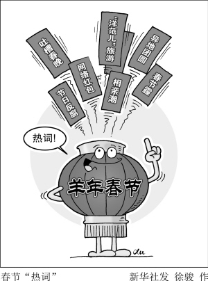 剛剛過去的羊年春節(jié)喜氣洋洋,看點多多:延續(xù)反腐高壓態(tài)勢,反腐相聲上了春晚,反腐動漫短片受熱捧,請客送禮的少了,清風(fēng)正氣得到弘揚(yáng);從“小眾試水”到“全民狂歡”,網(wǎng)絡(luò)紅包成為羊年春節(jié)的“標(biāo)簽”,為傳統(tǒng)年俗注入新活力;在這個春節(jié),人們還發(fā)現(xiàn),異地團(tuán)圓多了,旅游“爆棚”了,霧霾“爆表”了……