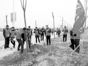 3月5日,扶溝縣人大志愿者來到縣人民公園植樹、拾垃圾,以實際行動營造文明新風。李會平 攝