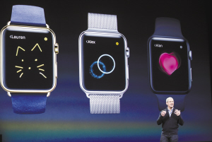 3月9日,在美國(guó)加州舊金山,蘋(píng)果公司首席執(zhí)行官蒂姆·庫(kù)克在發(fā)布會(huì)上介紹Apple Watch。