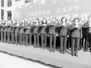 3月21日,淮陽一高舉行 “高考百日沖刺”誓師大會(huì)。校長(zhǎng)王業(yè)生及高一、高二、高三年級(jí)全體師生參加了會(huì)議。青年教師代表付士翔、家長(zhǎng)代表張鳳啟及學(xué)生代表分別進(jìn)行了充滿激情的發(fā)言。在距2015年高考還有100天的日子里,師生莊嚴(yán)宣誓:“以頑強(qiáng)的意志、百倍的激情、無窮的潛力,以最刻苦的精神、最堅(jiān)韌的毅力,全力以赴,奮勇爭(zhēng)先,爭(zhēng)分奪秒,苦戰(zhàn)百日,決戰(zhàn)高考,誓創(chuàng)輝煌?!?豆紀(jì)鋒 攝)