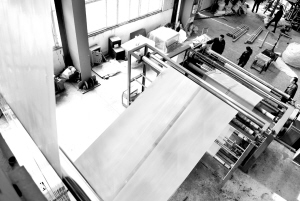 淮陽縣銀豐塑料有限公司流水生產(chǎn)線一瞥。該公司擁有大中型吹塑膜機(jī)組40多臺(tái)、制袋生產(chǎn)線6條,并擁有完備的塑料制品化驗(yàn)檢測(cè)設(shè)備。生產(chǎn)的農(nóng)用塑料膜等產(chǎn)品暢銷蘇、魯、豫、皖等地,遠(yuǎn)銷美國、韓國等國家。(記者 沈湛 攝)