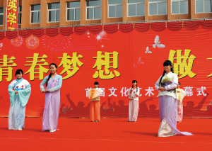 該校把特色教育作為發(fā)展的名片,推出“一班一品一特色”活動(dòng)。學(xué)校建立以班級(jí)為單位的社團(tuán)組織,并細(xì)分為體育類(lèi)、舞蹈類(lèi)、樂(lè)器類(lèi)、美術(shù)類(lèi)四大類(lèi)別,共70個(gè)社團(tuán)。比如:美工社團(tuán)制作漢服進(jìn)行表演,每一次都讓在場(chǎng)的觀眾潸然淚下,為自己是一個(gè)漢唐中華子孫而驕傲,為著漢唐服裝而自豪。學(xué)校出版了《求真大課堂》《走在成長(zhǎng)的路上》《花季無(wú)悔》《中學(xué)生科技創(chuàng)作》《班主任德育思想錄》《國(guó)學(xué)之蘊(yùn)》《家和萬(wàn)事興》《共創(chuàng)一個(gè)夢(mèng) 和韻文昌之家校共建》《“文昌杯”文明我先行 共筑一個(gè)夢(mèng)》主題征文作文選等校本教材。為豐富校園文化生活,學(xué)校邀請(qǐng)中國(guó)政法大學(xué)的霍登科,歷史文化學(xué)者王少清,青少年心理教育專(zhuān)家張海選、萬(wàn)禮彬,周口市中心醫(yī)院婦產(chǎn)科主任楊莉,河南國(guó)學(xué)院的施柳貞、王福琪、楊茹梅以及國(guó)內(nèi)外優(yōu)秀大學(xué)生對(duì)學(xué)生進(jìn)行國(guó)學(xué)誦讀和教育、演講比賽、法制教育、夢(mèng)想目標(biāo)教育、青春期心理和生理教育等活動(dòng)。在該校首屆“做大成教育 展青春夢(mèng)想”文化藝術(shù)節(jié)活動(dòng)中,有一項(xiàng)活動(dòng)叫珍藏十年“心愿瓶”,當(dāng)滿載學(xué)生夢(mèng)想的心愿瓶準(zhǔn)備珍藏時(shí),晴天出現(xiàn)了彩虹,讓在場(chǎng)的領(lǐng)導(dǎo)、家長(zhǎng)、學(xué)生很驚嘆,說(shuō)文昌中學(xué)的學(xué)生目標(biāo)遠(yuǎn)大,定有大才出現(xiàn)。這些有意義的活動(dòng)對(duì)廣大未成年人的身心健康起到了很好的促進(jìn)作用。