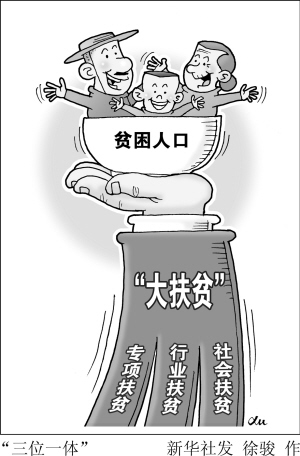 “扶貧開發(fā)是全黨全社會的共同責任,要動員和凝聚全社會力量廣泛參與。要堅持專項扶貧、行業(yè)扶貧、社會扶貧等多方力量、多種舉措有機結合和互為支撐的‘三位一體’大扶貧格局?!绷暯娇倳洀娬{。     新華社發(fā)