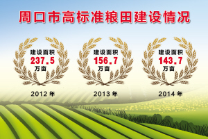 糧食生產(chǎn)之所以能夠在高起點上持續(xù)增產(chǎn),高標準糧田建設功不可沒。高標準糧田建設自2012年開始,我市共規(guī)劃高標準糧田面積900萬畝(含鹿邑),計劃到2017年完成農田基礎設施建設,到2020年全部完成配套服務體系建設,糧食綜合生產(chǎn)能力達到160億斤以上。截至2014年底,全市累計整合農業(yè)項目資金59億多元,累計建成高標準糧田面積537.9萬畝,占全市總規(guī)劃建設面積的59.8%。田成方、林成網(wǎng)、渠相通、路相連、旱可澆、澇能排的高標準糧田建設的大力實施,極大地提高了我市糧食綜合生產(chǎn)能力,把因干旱、澇災、低溫凍害等各種自然災害造成的損失降到了最低限度。